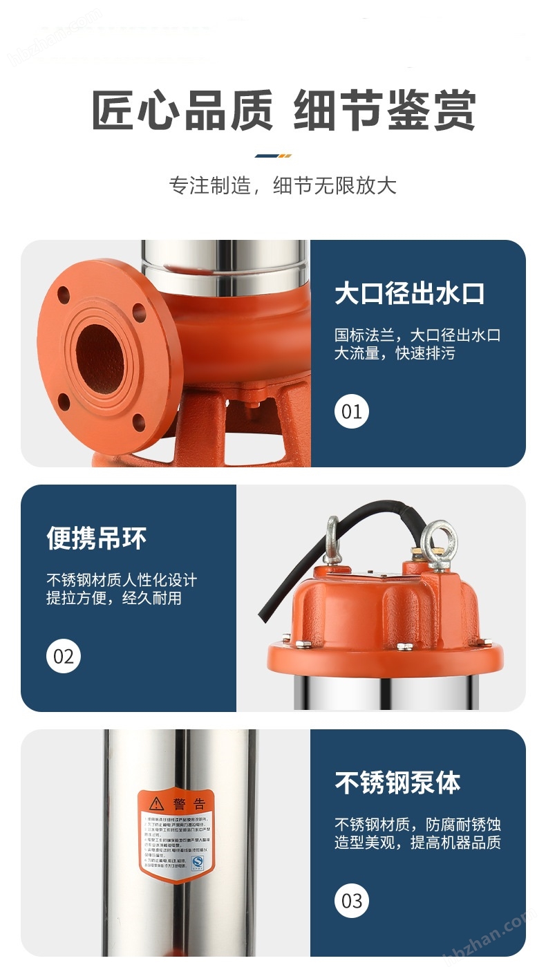 切割式潛水排污泵用于工廠商業嚴重污染廢水的排放、主宅區的污水排污站、城市污水處理廠派水系統、人防系統排水站、自來水廠的給水設備、醫院、賓館的污水排放、市政工程建筑工地、礦山配套附機、農村沼氣池、農田灌溉等行業,輸送帶顆粒的污水,污物,也可用于清水及帶弱腐蝕性介質。